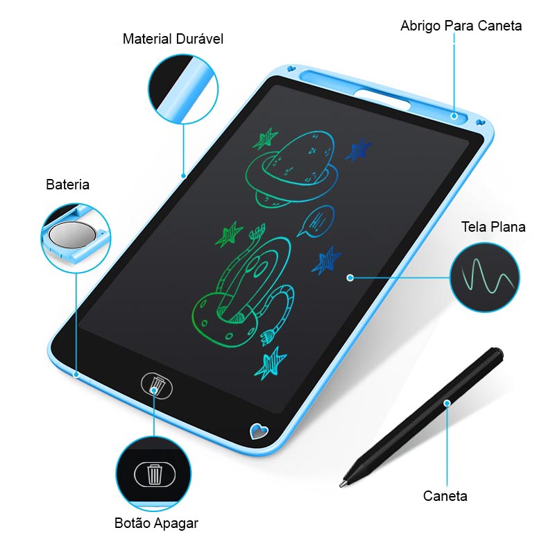-Durável e portátil: Almofada de escrever e a tela do lcd, são feitos de materiais duráveis, anti-choque e da anti-queda. A lousa é totalmente leve para colocar na mochila, ir a escola ou ao trabalho.