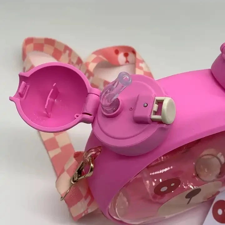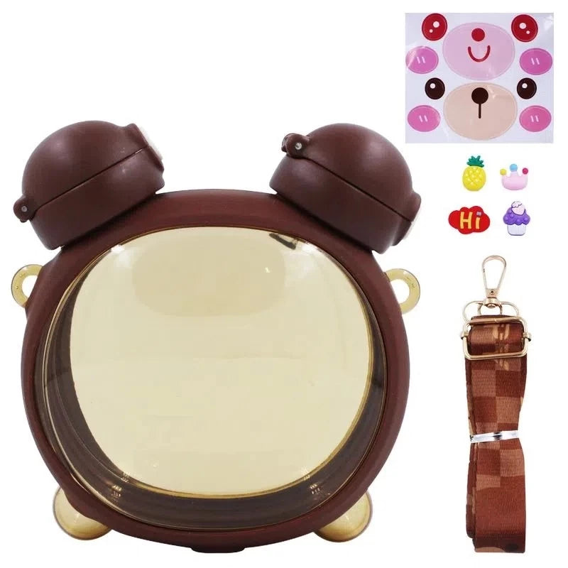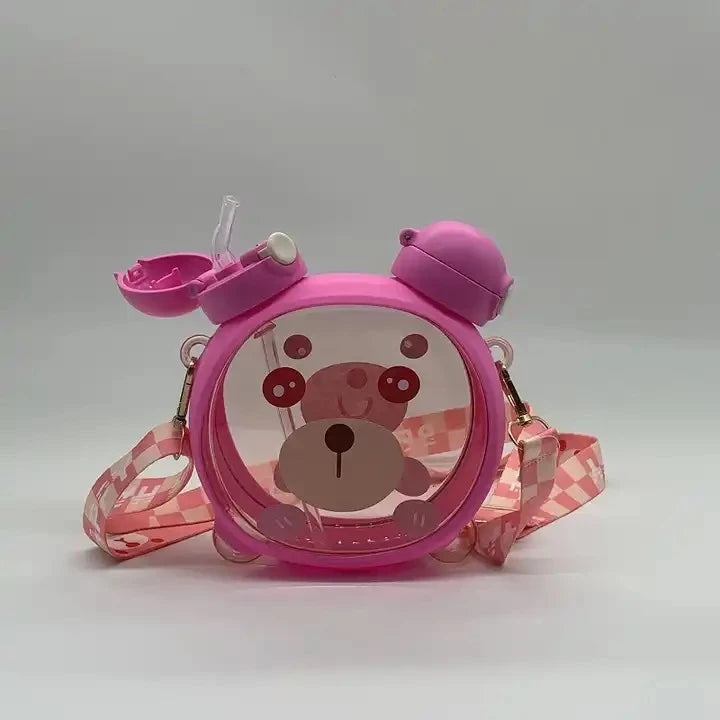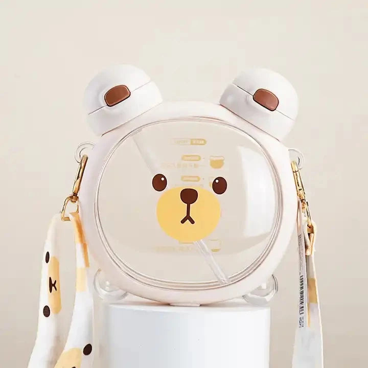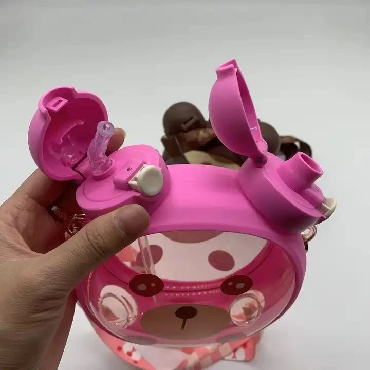 Garrafa Infantil Garrafinha Ursinho 750ml Com 2 Bicos e Cordão