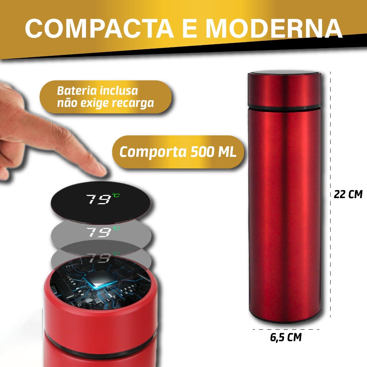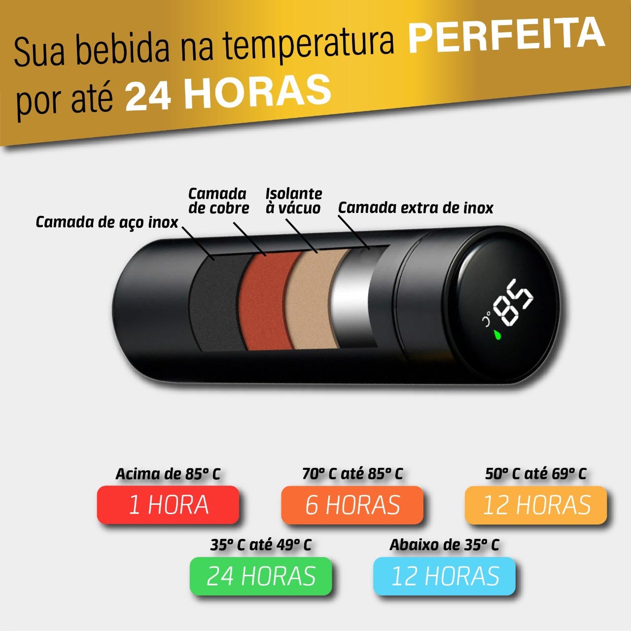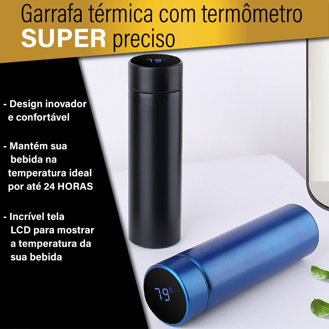 Já pensou em ter uma garrafa térmica que, além de conservar sua bebida por um bom tempo em uma temperatura correta, ainda te informa qual em qual temperatura está a sua bebida? Assim você vai saber se aquele café ainda está quentinho para ser tomado, ou se aquele suco ainda está gelado para dias mais calorosos.