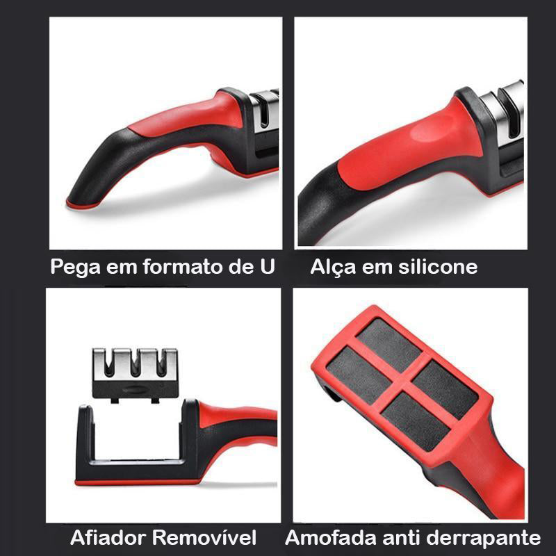 Está cansado de ter facas que não cortam e sofrer para cortar seus alimentos? Com este afiador de facas 3 em 1 você vai manter suas facas sempre afiadas e preparadas para o uso deu um jeito fácil e rápido. Server para diversos tamanhos e tipos de facas e a afiação de suas facas é feita em segundos, deixando suas facas prontas para o uso. Corte de carnes, vegetais, saladas entre outros serão muito mais fáceis de fazer. Se você é um cozinheiro de mão cheia ou está aprendendo a cozinhar este afiador é um item indispensável em sua cozinha. Você não precisará comprar facas novas pagando caro por isso, aproveite essa oportunidade e garanta esse afiador para tornar a arte de cozinhar ainda mais tranquila.